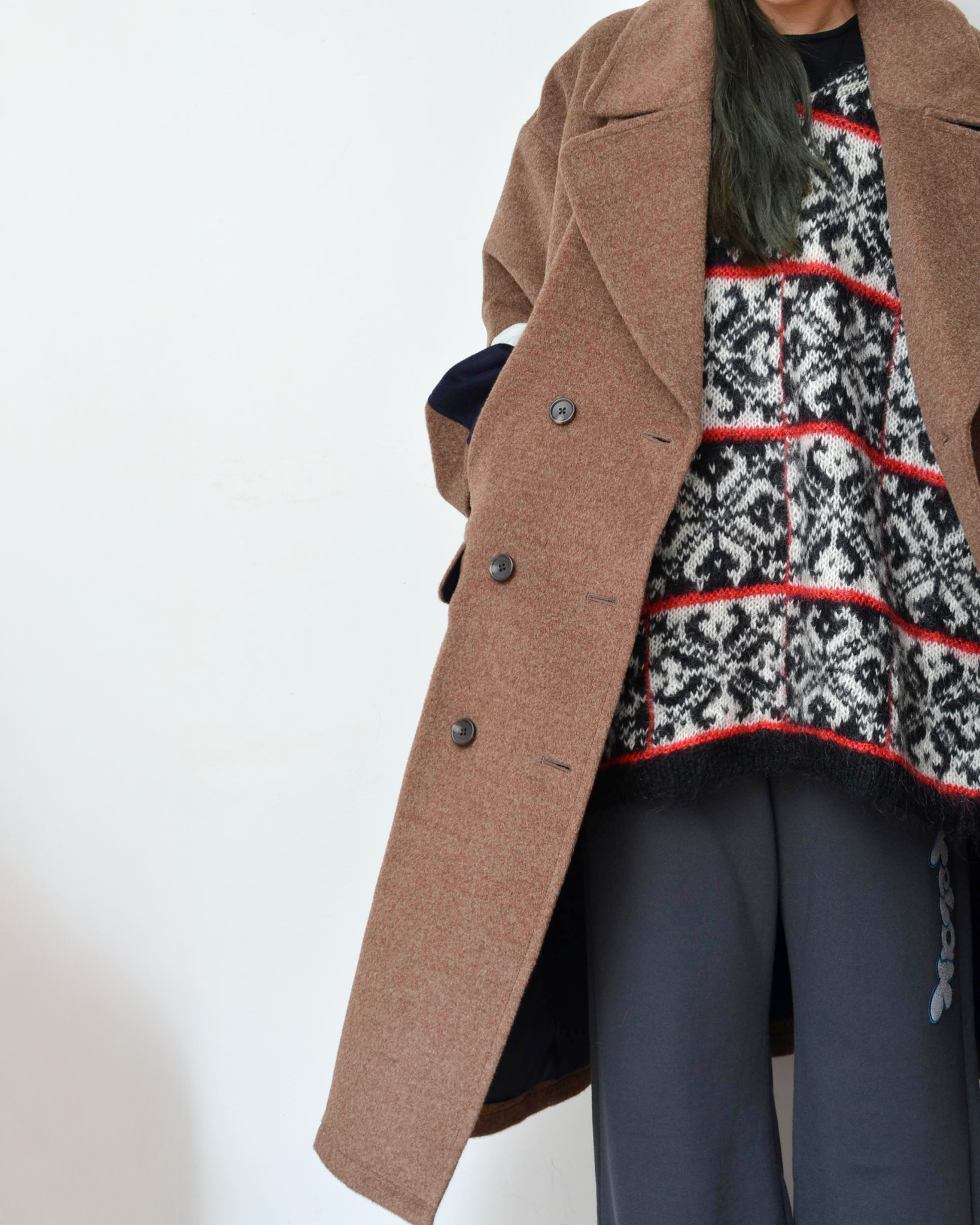 前後で種類の違うusedニットをかけ合わせている。