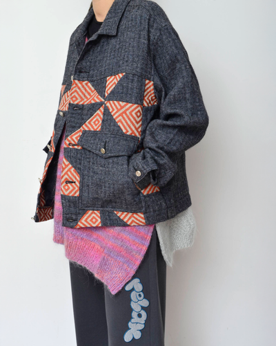 HERRINGBONE LINEN WOOL QUILTED WORK BLOUSON