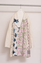 A used floral skirt and a used scarf are cut and arranged according to the original pattern on the front.