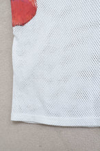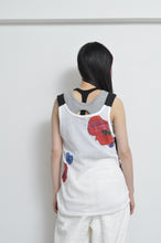 Based on a used mesh tank top, this tank top has various used item flower motifs cut out and patched.