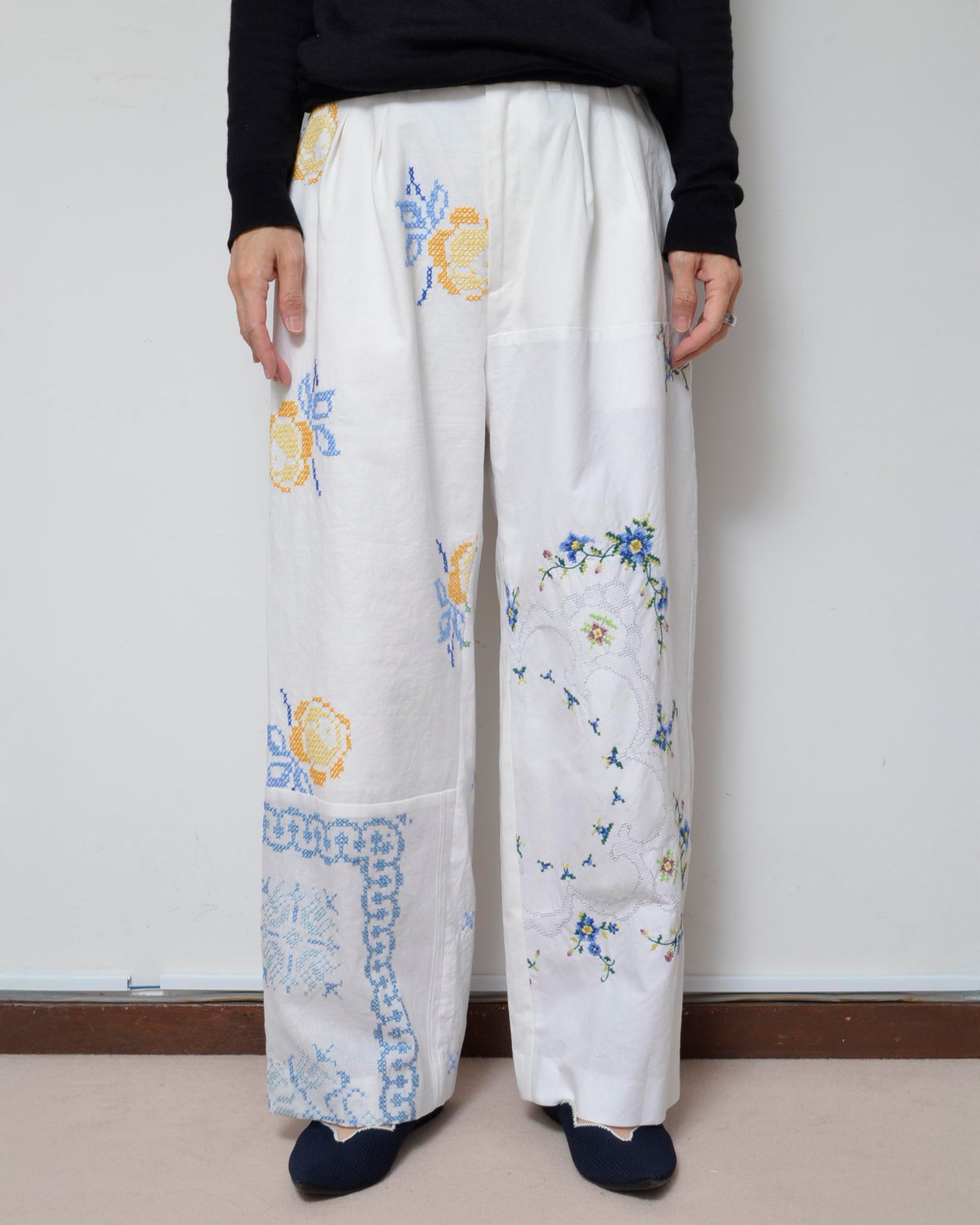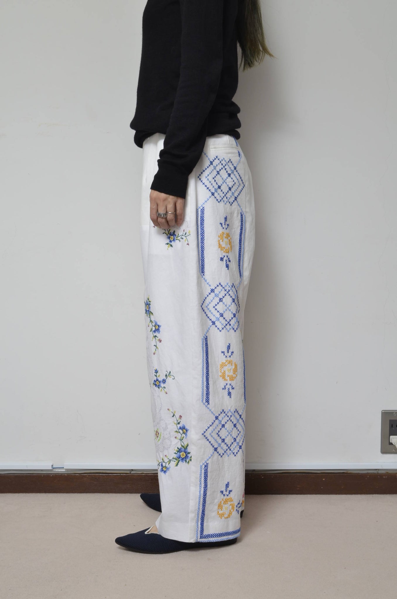 YEAH RIGHT!!定番品番のusedユーロテーブルクロスを使用したワイドストレートシルエット。
