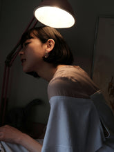 静かで硬質なガラスと、そのそばで揺れるusedビーズの対比が美しいピアス。