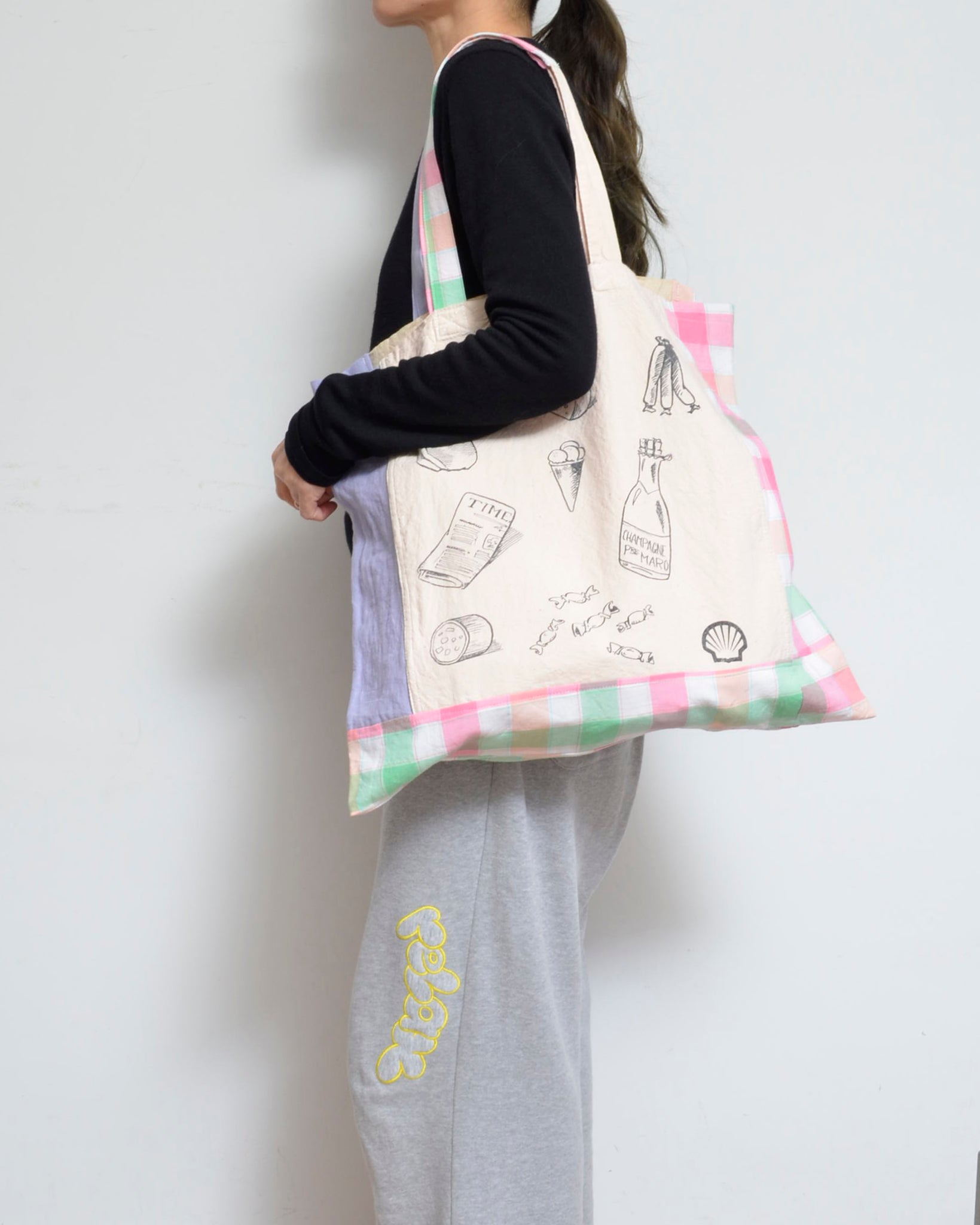usedエコバッグを2枚使用し、組み合わせてできたメインの収納部分と、もともとエコバッグだった部分もそのまま収納としてご利用いただけます。