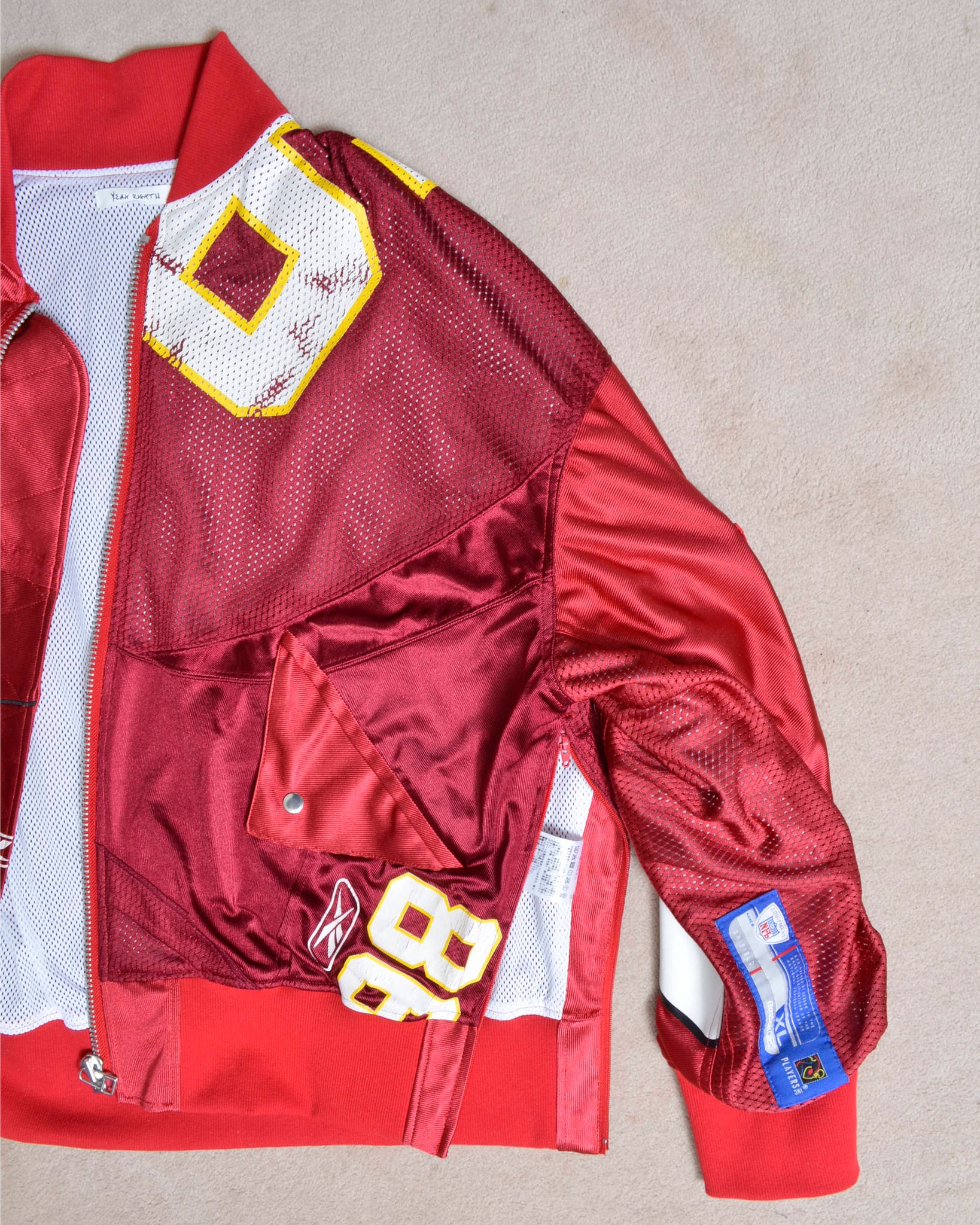 usedフットボールシャツを解体し、再構成して仕立てたMA-1。
