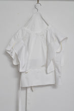 両脇の穴にテープを通して結んで着たり、テープを通さずに羽織ったり、前後どちらでも着れるアイテムです。