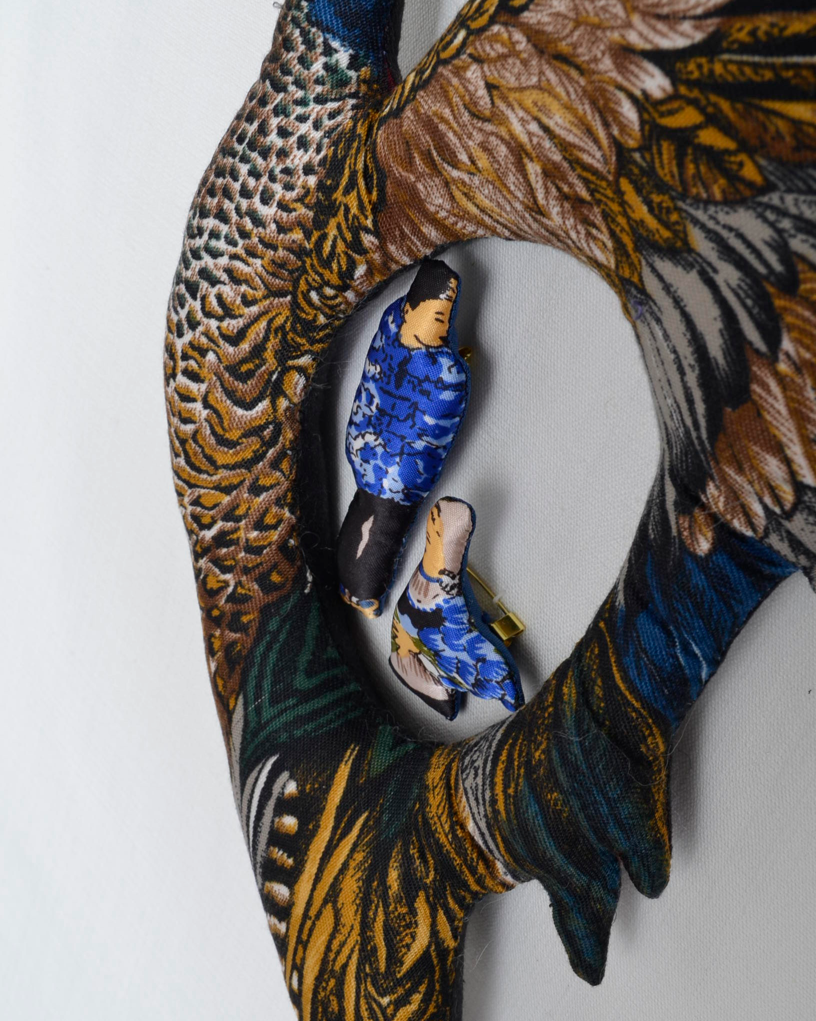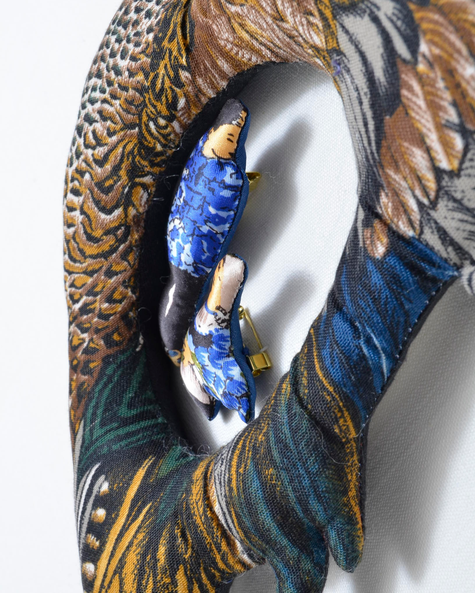 usedスカーフやテキスタイルを一点ずつ切り抜き、ワタを詰め込み、