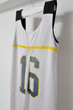 usedフットボールSHを解体しオリジナルパターンで仕立てたフェミンンなラインのワンピース。
