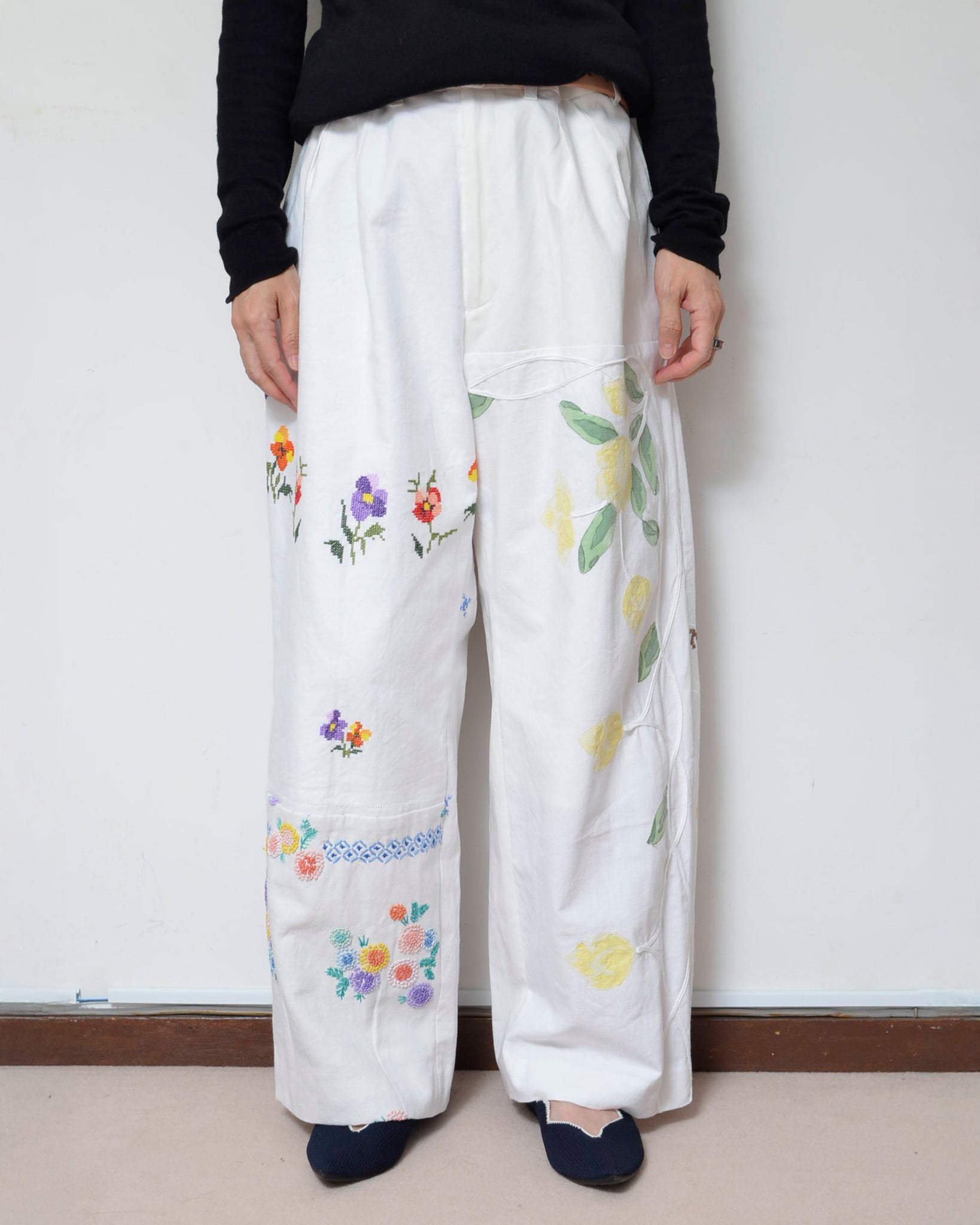 YEAH RIGHT!!定番品番のusedユーロテーブルクロスを使用したワイドストレートシルエット。