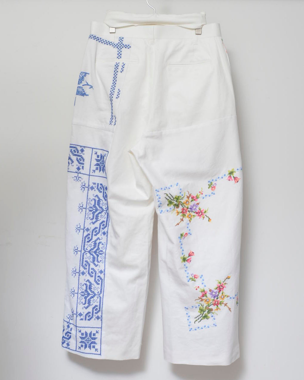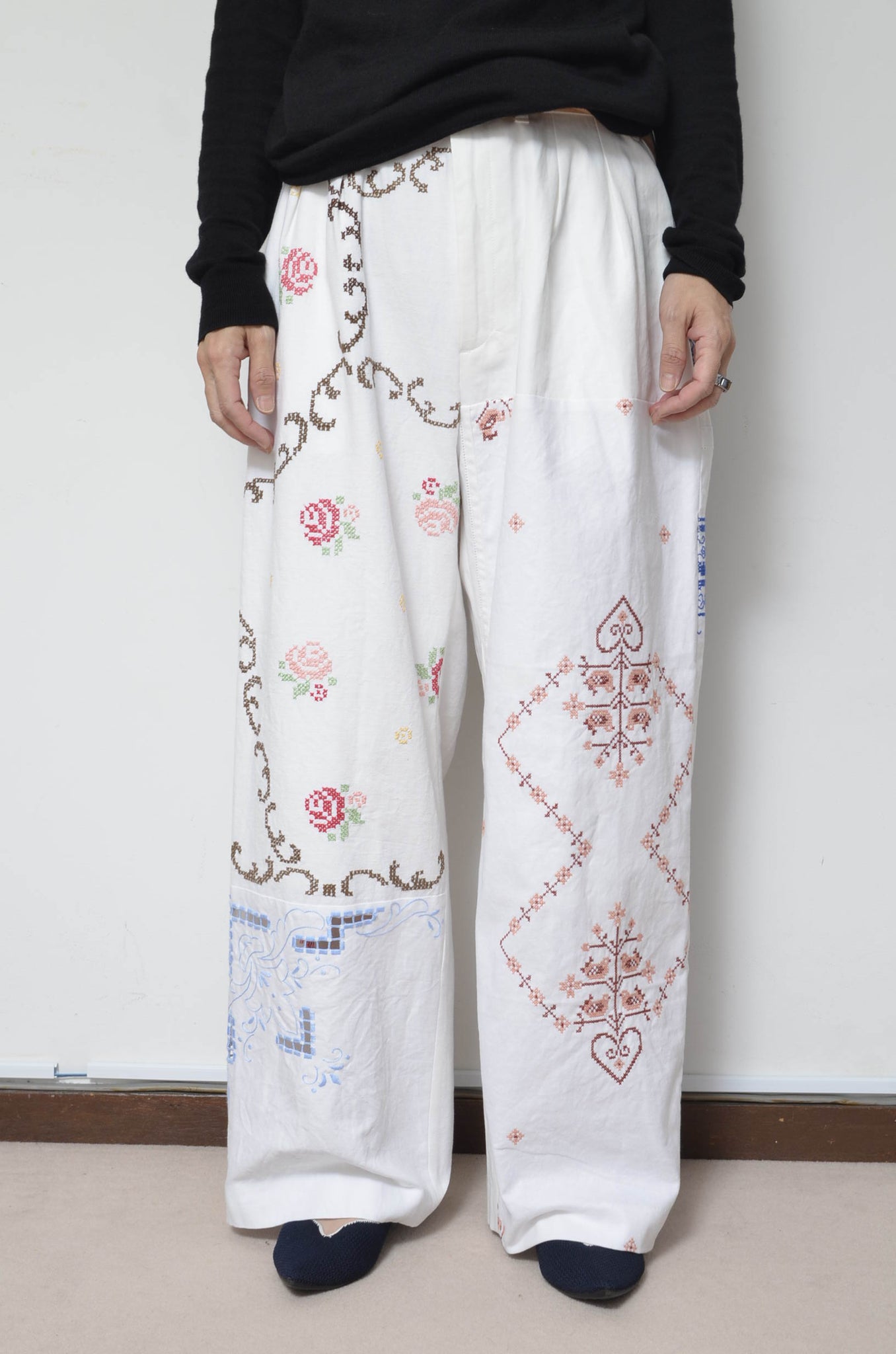 YEAH RIGHT!!定番品番のusedユーロテーブルクロスを使用したワイドストレートシルエット。